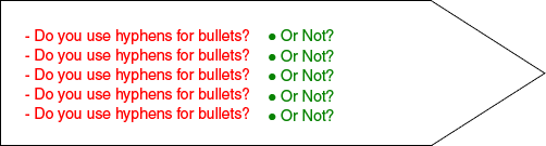 Не делайте это, потому что это непрофессионально. Попробуйте использовать точки или графические символы.