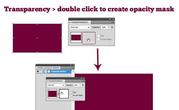 Для того, чтобы применить маску непрозрачности к элементу, создайте объект и откройте панель прозрачности. Вы увидите изображение объекта. Обратите внимание на пространство справа от просмотра. Вот где находится маска, просто дважды щелкните этом пространстве, и вы получите маску.