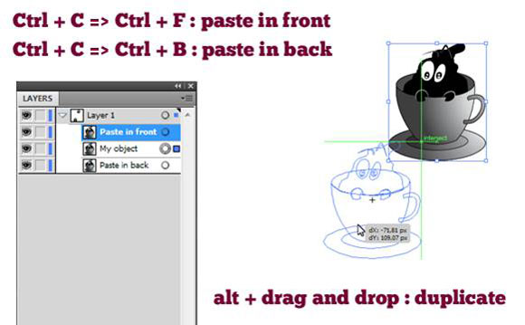 Вставить объект сверху: (CTRL + C — чтобы скопировать) CTRL + F.