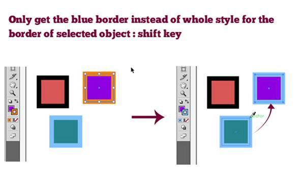 Еще одна хитрость заключается в использовании клавиши SHIFT. В сочетании с пипеткой, эта клавиша позволяет выбрать только нужный цвет и применить его к заливке или обводке цвета, не копируя стиль всего объекта.