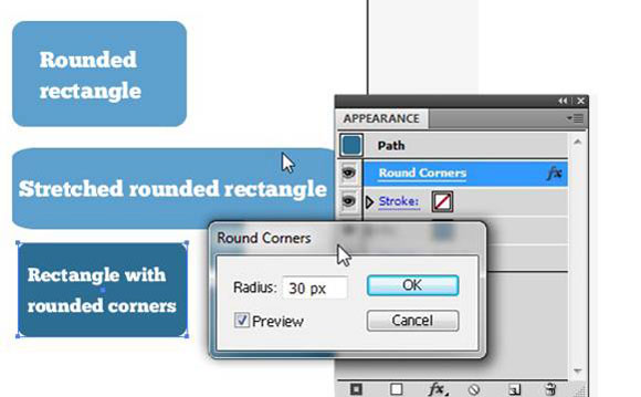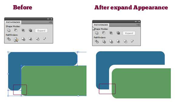 Недостаток этого метода в том что, если, вы например, решите обрезать объект, закругленные углы будут по-прежнему применяться к новому объекту. Для того, чтобы использовать эти прямоугольники без закругленных углов везде, вы должны выделить прямоугольник и перейти в Object> Expand Appearance.
