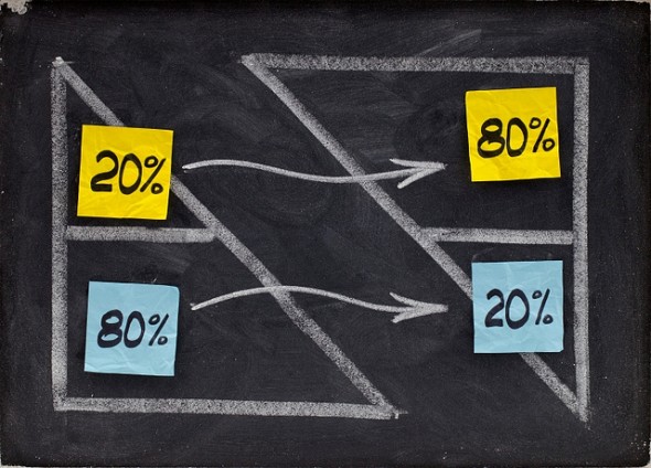 Принцип Парето , также известен как правило 20/80 , говорит, что 20% ваших усилий принесут 80% результата. Эта основная идея может быть применена и к другим отношениям.