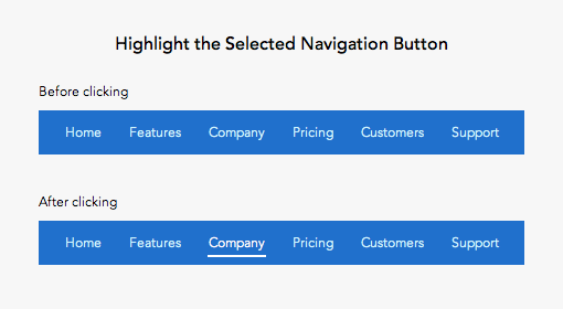 Многие дизайнеры забывают выделить кнопку того раздела меню, навигационного меню (тот раздел меню, в котором находится пользователь). Когда посетитель кликает по кнопке, ему нужна ответная реакция — визуальное подтверждение того, что он выбрал.