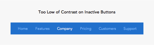 Неактивные пункты меню должны быть менее контрастны чем выбранный пункт, но не настолько, чтобы их было сложно прочесть. Из-за слишком низкого контраста в этом случае пользователь может не заметить кнопку, или подумать что они вообще не работают.