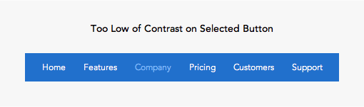 Из-за низкого контраст текст кнопки сложнее прочесть. Пользователь напрягается, чтобы понять куда он кликнул. Получится намного быстрее если пользователь сможет понять где он, лишь взглянув на меню.