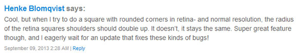 «Круто! Но когда я пытаюсь сохранить квадрат с округленными краями и для ретины и в обычном размере, радиус округления углов в файле для ретины должен удваиваться, но он не делает этого. Но все равно отличное дополнение, и я с нетерпением жду апдейта с исправлением подобных багов».