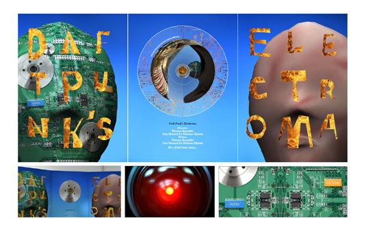 В примере из этого пункта были использованы настроенческие изображения (кадры из фильма «2001 год: Космическая одиссея» и каска), чтобы показать стиль и величие, с которыми должен ассоциироваться проект для Daft Punk. Сочетание картинок с презентацией — вместо того, чтобы представить их отдельно позже — делает общение с клиентом эффективнее.