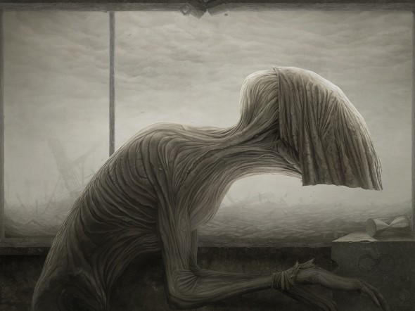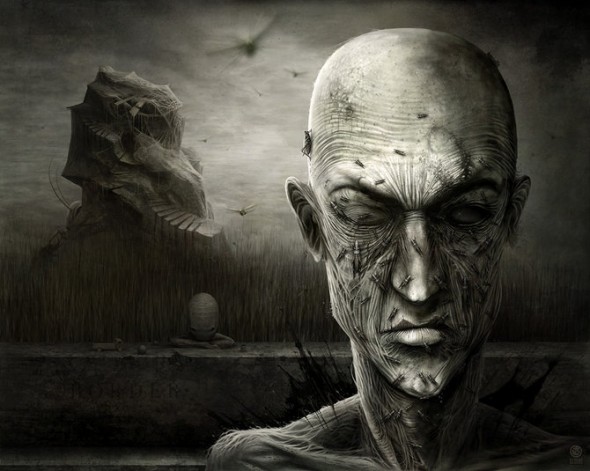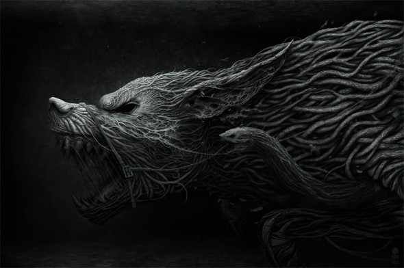 В детстве у нас была своя небольшая компания из 3-х человек, мы занимались в основном тем, что рисовали в тетрадках монстров и копировали обложки тяжелых групп «IronMaiden», «Ария» и т.д. Было в этих картинках что то, что притягивало как магнитом, хотелось сделать так же. Вот наверно с этого все и началось. Потом начались долгие поиски себя — стиля. Пробовал рисовать карандашами, акварелью, сепией, сангиной и т.д. Натягивал и грунтовал холсты для масла, но тут, что-то тоже не пошло, и я благополучно перешел на тонированную бумагу и тушь. С этими материалами завязалась долгая «дружба». Рисовал пером, поэтому детализировал практически каждый миллиметр работы. На это уходило много времени и сил, и на тот момент я считал что всё, поиск стиля окончен. Только вот удовольствия от процесса было не много. В конечном итоге и этот вариант себя исчерпал.