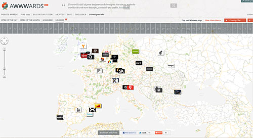 Вам интересно, в какой стране мира нынче живут самые креативные веб-мастера? На Awwwards.com опубликована карта мира c флажками-логотипами лучших студий и веб-дизайнеров — тех, что набрали наибольшее количество голосов в голосовании за ушедший 2011 год.