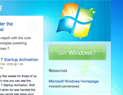 Большую зеленую кнопку «Получи Windows7» легко заметить на странице.