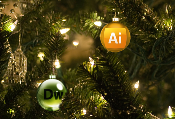Украсить елку можно шарами, которые будут оформлены логотипами любимого ПО вашего друга или коллеги веб-дизайнера. Перенести изображение на шар можно различными способами. Самый простой — распечатать логотипы на клеящейся бумаге и просто наклеить ее на шар. Второй способ сложнее, однако результат будет выглядеть лучше: распечатайте трафареты логотипов и через них нанесите на шар акриловую краску, или краску из распылителя.