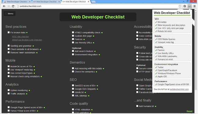 Это расширение нужно каждому веб-дизайнеру. Web developer checklist проверяет любую страницу на наличие ошибок.
