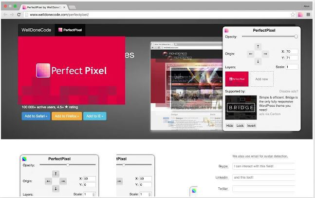PerfectPixel позволяет разработчикам создавать полупрозрачное изображение поверх страницы, чтобы провести сравнение вплоть до пикселя.