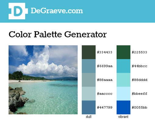 Color Palette Generator — автоматизированная версия cоздания цветов из фотографии или изображения. Пользователи могут выбрать одно из изображений или загрузить их собственное, чтобы получить цветовую палитру с девятью цветами.