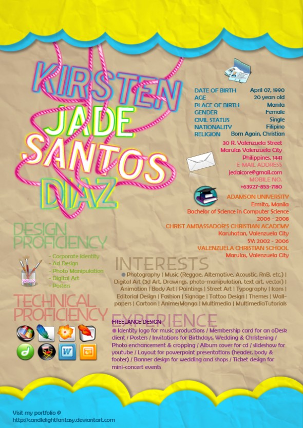 В прошлом году тоже пыталась скреативить резюмешку, на тот момент мне казалось это прикольным) Сейчас бы вообще по другому сделала б, но пока нет надобности:)