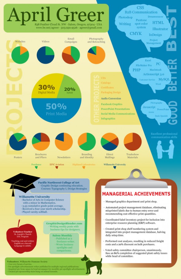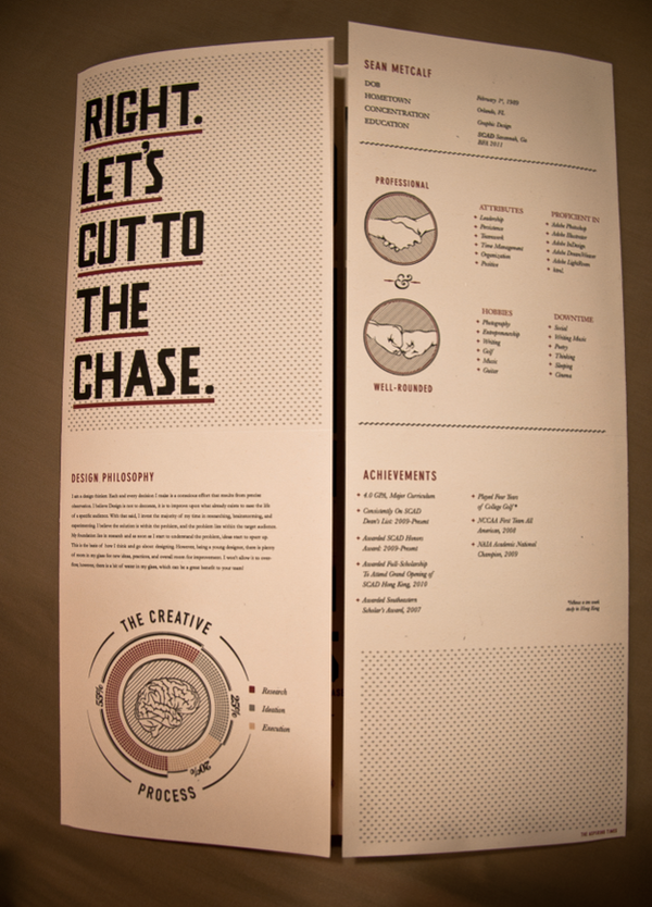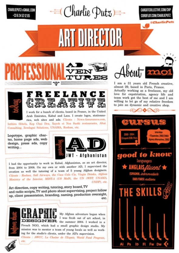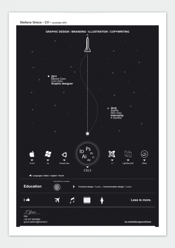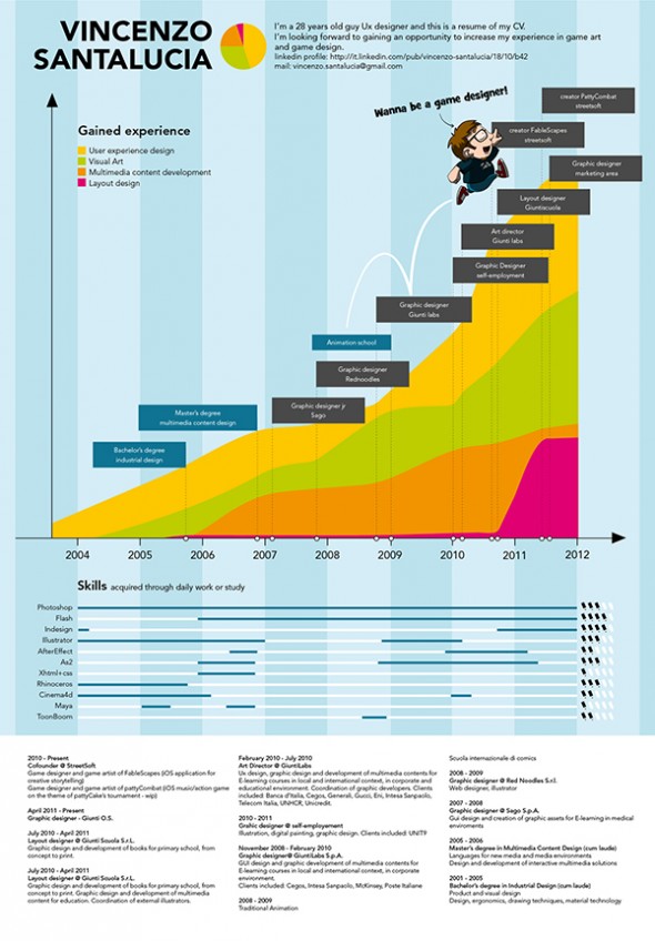 Во время поиска работы резюме играет, пожалуй, решающую роль. Поставьте себя на место работодателя: скорее всего он устал от однообразия и хороший способ для соискателей обратить на себя внимание—сделать своё резюме ярким и незабываемым. Это в большей степени касается дизайнеров: почему вместо того, чтобы писать о своих знаниях и умениях, просто не показать их на практике, сделав своё резюме более креативным? А для вдохновения, давайте посмотрим, как это может быть реализовано на примерах.