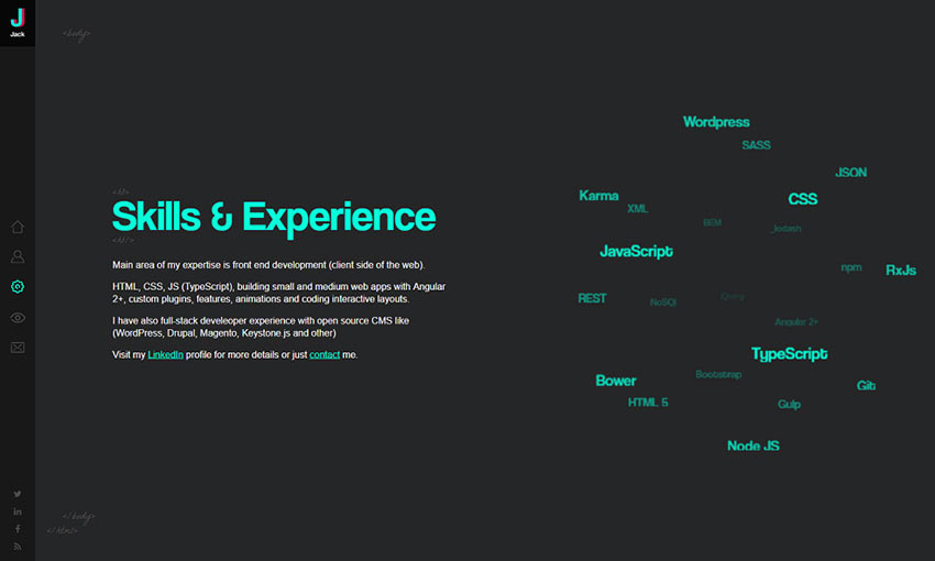 На этом сайте все говорит о превосходном стиле и высоком уровне мастерства. Поражает то сколько внимания деталям уделил дизайнер. В процессе навигации по этому тщательно продуманному портфолио вам захочется изучить все уголки и узнать как можно больше о разработчике.