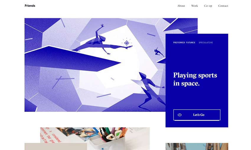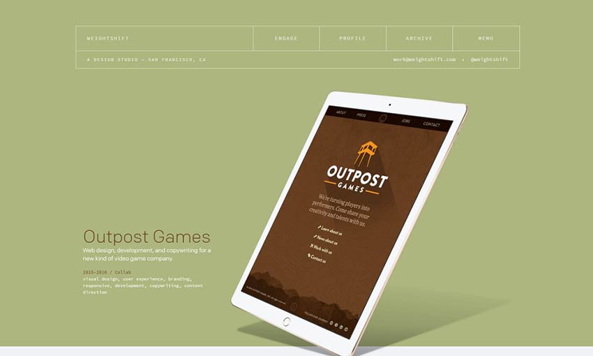 А вот сайт, напоминающий визитку. Он изыскан, красив, прост, но тщательно продуман. Здесь много примеров работ студии, которые дают понимание о том, что это за компания и какие методы работы предпочитает. Это очень полезно — понимать цели и процессы, которыми руководствуется дизайнер.