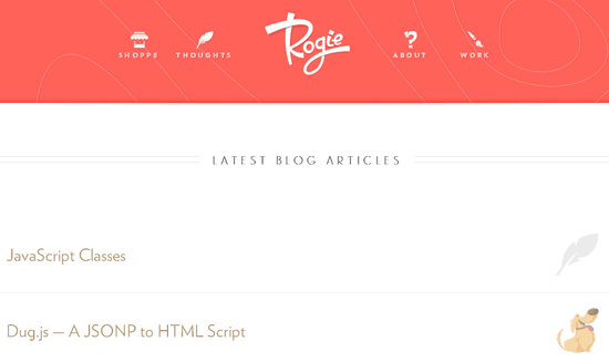 К примеру, меню сайта Rog.ie дает пользователю возможность «поиграться». При наведении курсора на элемент, он увеличивается и всплывает, что привлекает внимание и развлекает.