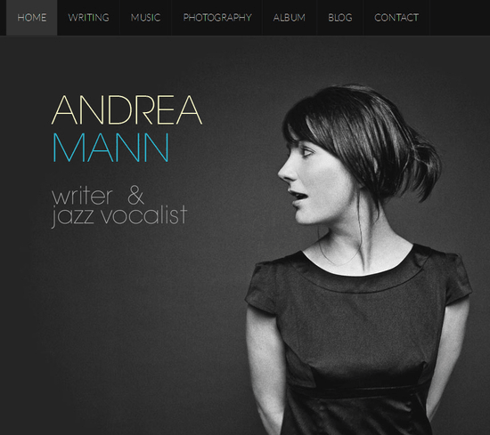 Ничто не поможет нам передать эти ощущения так, как большое портретное фото, как на сайте Andrea Mann. Дизайнер блестяще использовал классическое портретное фото в черно-белом варианте.