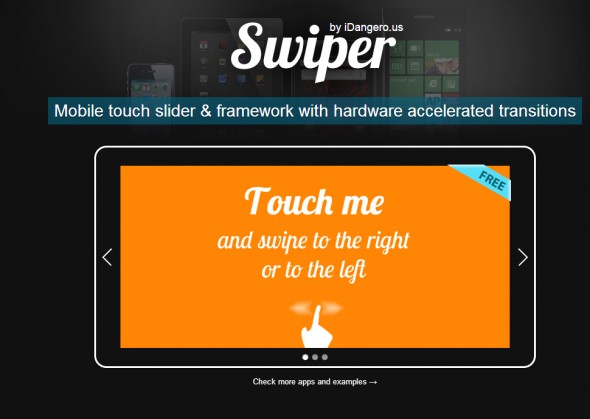 Бесплатный контент-слайдер, разработанный для мобильных приложений. Он адаптивный и поддерживает сенсорные касания. Слайдер очень легкий — занимает всего 6,5 Кб, и очень быстрый.
