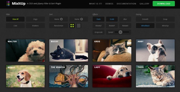 MixitUp — плагин jQuery для фильтрации и сортировки объектов. Поскольку часть плагина реализована на CSS3, он будет работать только в браузерах, которые поддерживают соответствующие свойства.