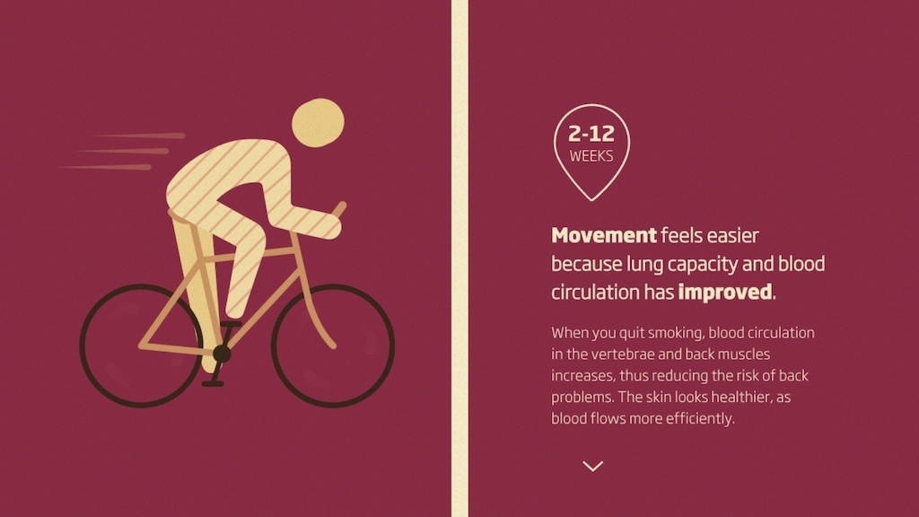 A poster of someone riding a bike, with the caption 'Movement feels easier, because lung capacity and blood circulation has improved'.