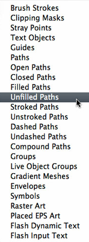 Возможно вам нужно будет выделить только открытые контуры («Open Paths») или наоборот закрытые («Closed Paths»). Конечно можно сделать это вручную, но в сложных иллюстрациях это может потребовать немалых усилий. Плагин решит эту проблему. При помощи «Select Menu» вы сможете выделить направляющие (Guides), залитые (Filled), открытые (Open) контуры и даже контуры без обводки (Unstroke), а также много других вариаций фигур. Для этого вам понадобится совершить лишь несколько кликов.
