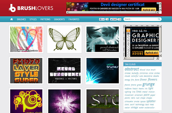 На сайте brushlovers.com можно найти не только кисти. Однако раз уж нас интересуют они, остановимся подробнее на системе поиска по ресурсу. Если вы не определились с четкими требованиями к кистям, которые ищете, можете просто полистать собранные в хронологическом порядке варианты. Также для тех кто знает что ищет есть облако тэгов. Чем больше шрифт тэга — тем больше выбор кистей по этому запросу.