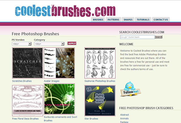 На сайте qbrushes.net возможен поиск как по категориям и подкатегориям (что немного удобнее и понятнее особенно плохо говорящим по-английски пользователям), так и по тегам. И кстати тегов здесь море, так что по точности поиска по сайту, qbrushes — впереди планеты всей.