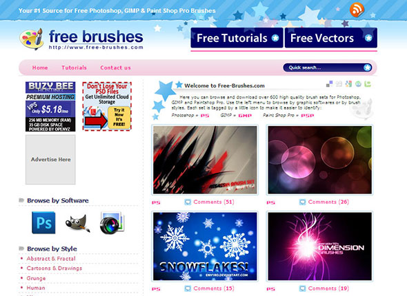 На сайте free-brushes.com категорий вдвое больше. Поэтому поиск будет конкретнее. Также есть возможность искать кисти под определенное программное обеспечение. Помимо Phtoshop представлены GIMP и Paint Shop Pro.