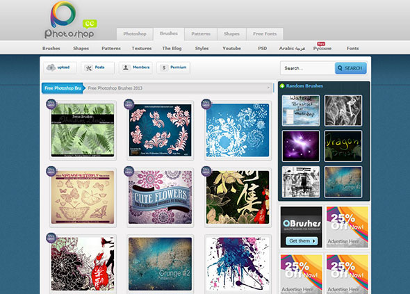 photoshop.cc - очень полезный ресурс для пользователей Photoshop. Здесь и 22 категории кистей и много других полезностей. Ресурс поддерживается компанией Adobe и довольно часто обновляется.