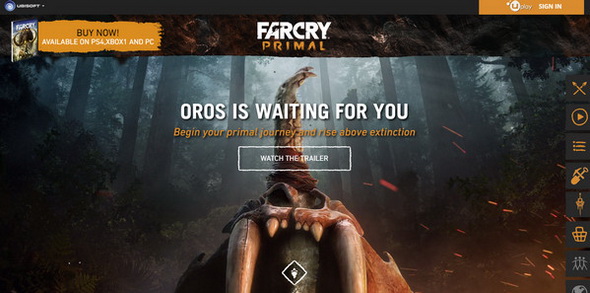 У FarCry Primal есть фантастический промо сайт, который отлично передает атмосферу этой видеоигры, завоевавшей множество наград. Здесь тема каменного века во всем! Можно посмотреть трейлеры, скачать фан-кит, изучить интересные моменты и пр.