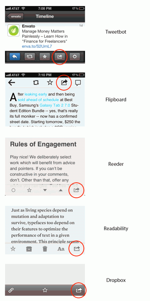 Другой пример, когда значок становится стандартным, путем широкого применения – это иконка «Поделиться» у Apple. Вы можете легко ее распознать, так как она присутствует в приложениях iOS и OSX. И не только там. Кроме этого его используют и сторонние разработчики, не имеющие отношения к Apple.