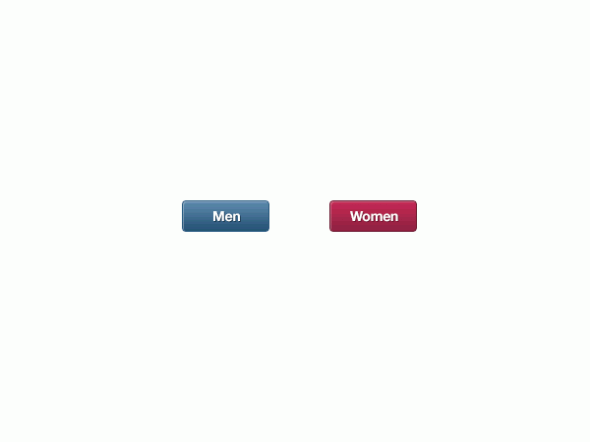 В качестве простого примера подойдет задание разработать кнопки с гендерным различием. Вы можете начать с создания двух активных кнопок с надписями "Мужчины” и «Женщины» соответственно. Кроме того, вы можете добавить цвета, которые традиционно ассоциируются с мужским и женским полом