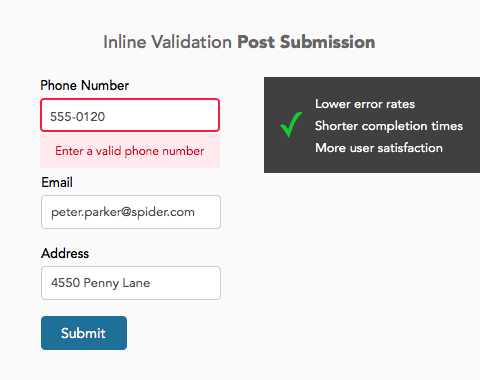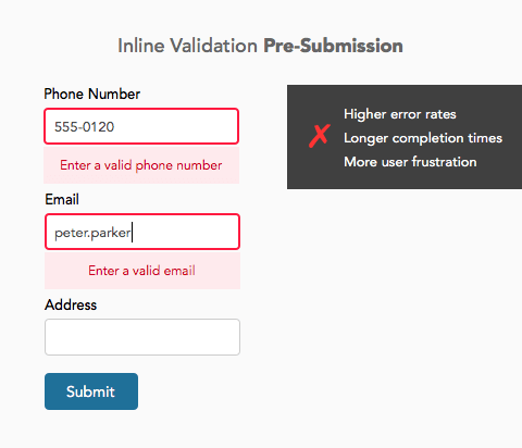 Несмотря на то, что у пользователей есть возможность исправить ошибку сразу после ее совершения, они игнорируют сообщения об ошибке. Они продолжают заполнять форму и совершают еще больше ошибок. Это разочаровывает.