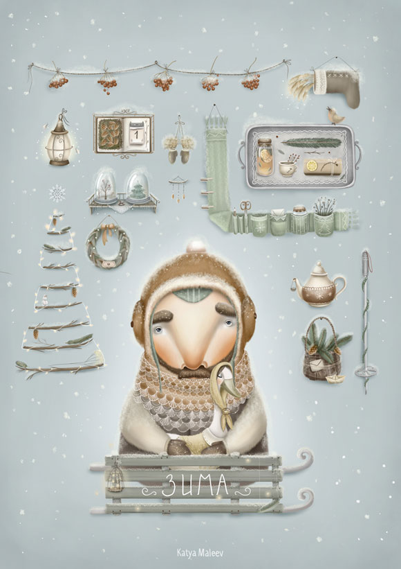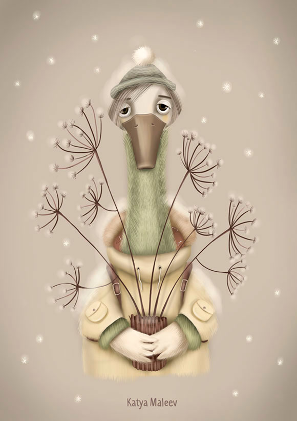 У меня есть такой главный воображаемый друг – Карл, может показаться, что он грустный, но на самом деле он просто задумчивый и душевный, у него есть подружка – гусыня Матильда. Сейчас рисую календарь сезонный с этой парочкой и их любимыми вещами. Еще есть несколько проектов, о которых говорить не буду, лучше, когда закончу, вы сами увидите.