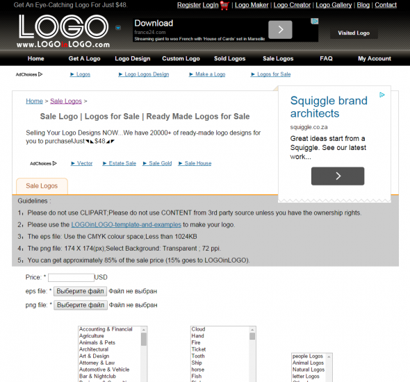 Порядочные заказчики попадаются не всегда. Когда вы работаете удаленно сложно застраховать себя от неудач определенного типа. Если работодатель отказался от заказа уже после того как вы нарисовали логотип, не расстраивайтесь и попробуйте его продать. Сделать это вы можете на следующих сайтах:
