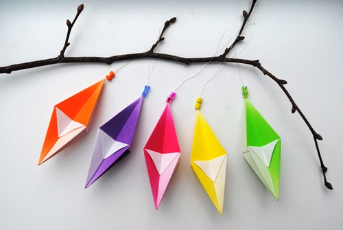 Вот одно 3D украшение, которое вы можете сделать из цветной бумаги или из журнальных листов. Вам понадобятся: бумага, ножницы, карандаш, двухсторонняя липкая лента (или клей), нить и игла.