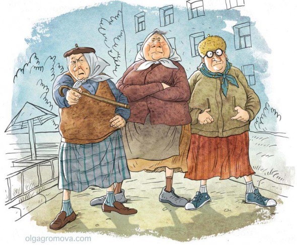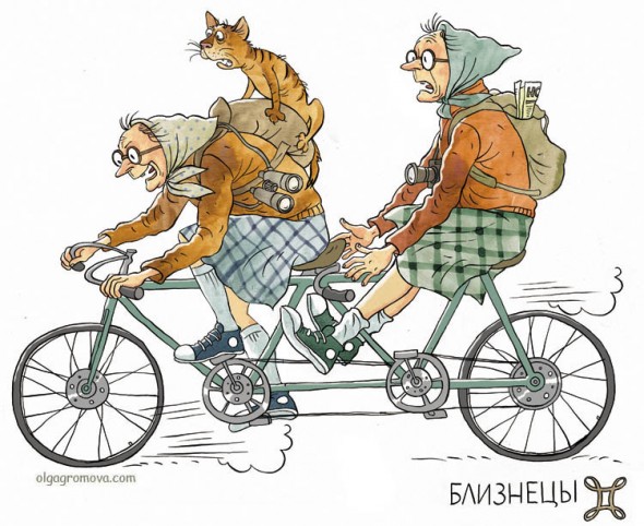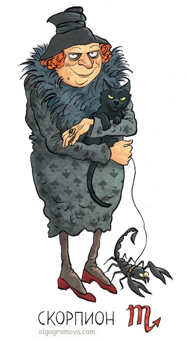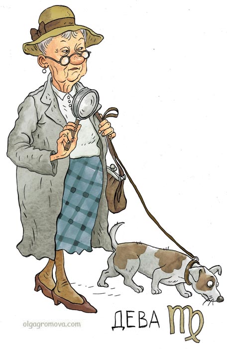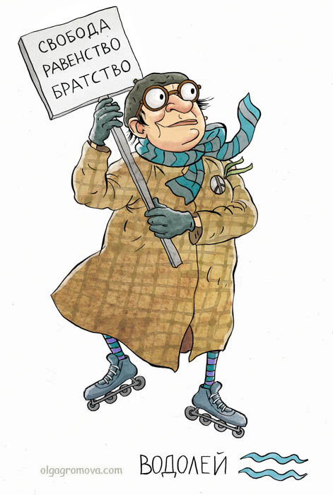 Я по знаку зодиака Водолей, это та старушка, что на роликах и с транспарантом «Свобода, равенство, братство». «Знаки зодиака в бабках» это просто шутка, мне показалось забавным нарисовать 12 типажей старушек по заданным характеристикам. Только я не была уверена, что осилю все 12 типажей.