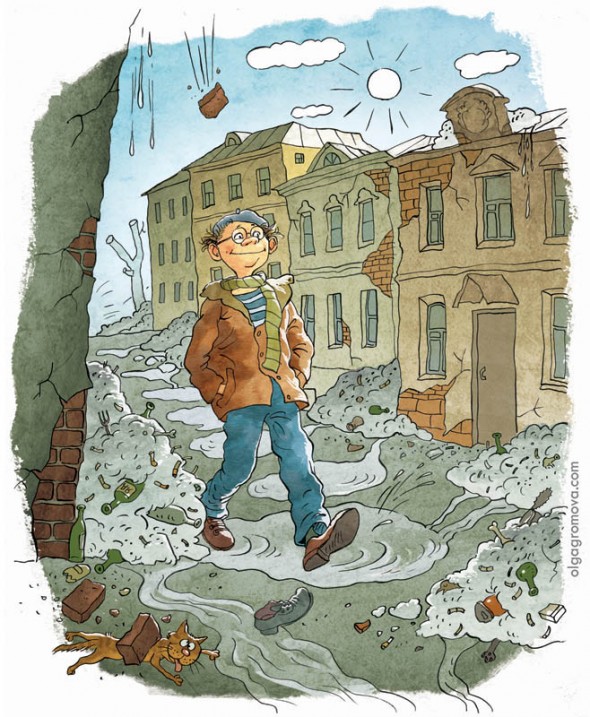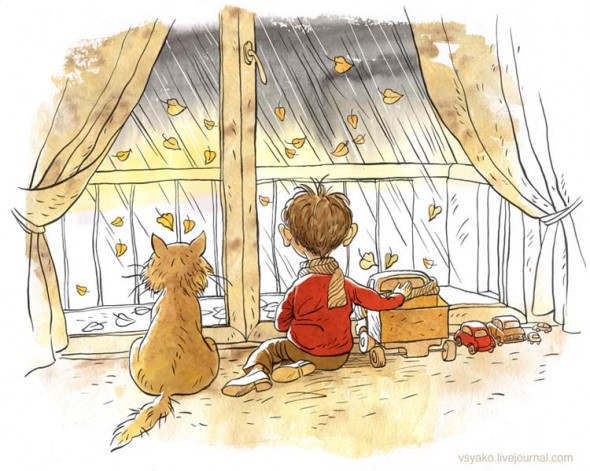Я очень критически отношусь к своим рисункам. По прошествии времени мне почти всегда хочется что-то исправить, изменить, сделать по другому в своих старых работах. Не могу выделить какую-то конкретную иллюстрацию, особо мной любимую. Но есть одна моя старая карикатура, которая больше всего понравилась, и разошлась по сети – она называется «Хмурая, хмурая осень». Наверное, больше всего писем и ссылок вызвала именно эта иллюстрация.