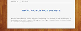 Методом проб и ошибок мы пришли к заключению, что чаще всего вы получите деньги вовремя, запросив клиента произвести оплату в течение 15 дней. Гораздо чаще, чем когда вы просите заплатить немедленно после завершения работы и, тем более, чем при запросе оплатить в течение 45 дней.