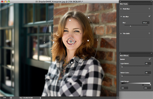 Давайте рассмотрим возможности фильтра Iris Blur (имитация фокуса) на примере.