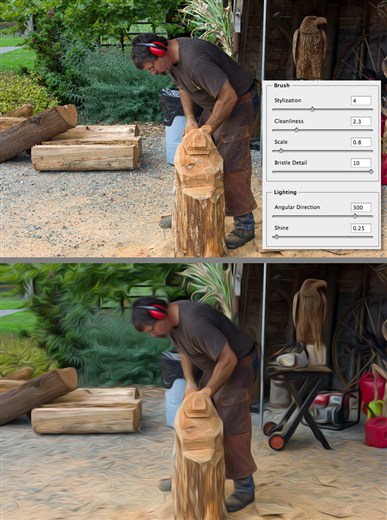 Новый фильтр имитации масляной краски позволяет быстро добавить вашему изображению живописный эффект. Фильтр открывается в отдельном окне. Размер кисти параметры освещения можно корректировать с возможностью просмотра в реальном времени. Вы можете получить доступ к инструменту, выбрав Filter>Oil Paint filter.