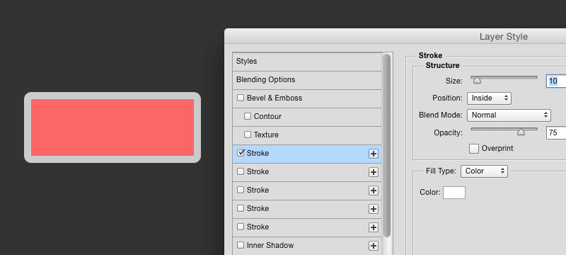 Стили слоя Stroke/Обводка, Inner Shadow/Внутренняя тень, Color Overlay/Перекрытие цвета, Gradient Overlay/Перекрытие градиента и Drop Shadow/Тень теперь можно применять многократно (до десяти эффектов) к одному слою. В итоге у вас получится десять отдельных одинаковых типов стилей в одном слое. Это открывает новые волнующие возможности и пожалуй это одно из лучших обновлений Photoshop CC 2015.