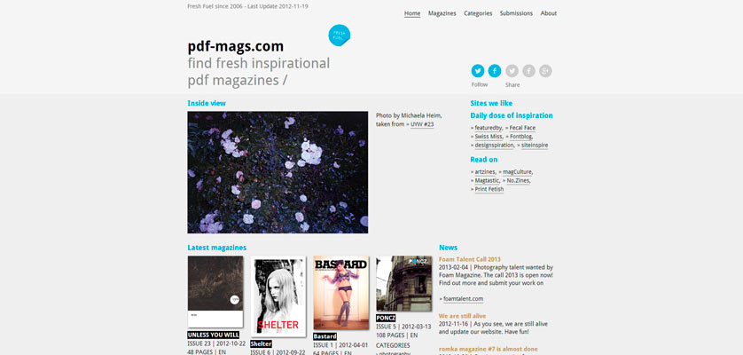 Здесь вы можете найти разнообразные журналы о дизайне, вдохновении, творчестве в формате PDF.