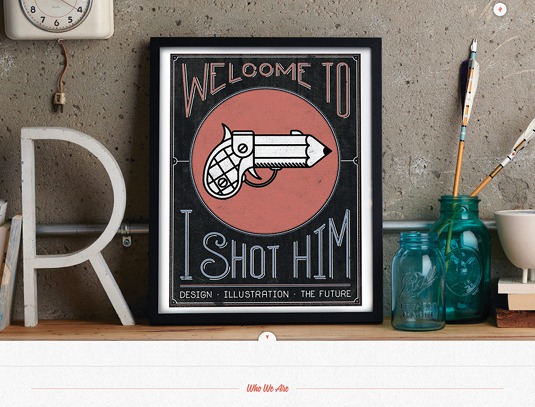 Дизайнерская фирма I Shot Him использует фото своего логотипа в фоторамке в качестве основного элемента дизайна.