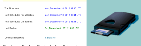 Просто выберите день и время, а также частоту с которой вы хотите производить резервное копирование, и ваши файлы и база данных SQL будет сохранена на вашем аккаунте Dropbox.