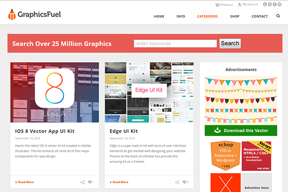 Помимо множества других исхожников, на graphicsfuel можно найти немало ui-элементов. Тэги немного помогают в сортировке контента, однако если вам нужно что-то конкретное, лучше пользуйтесь поиском.