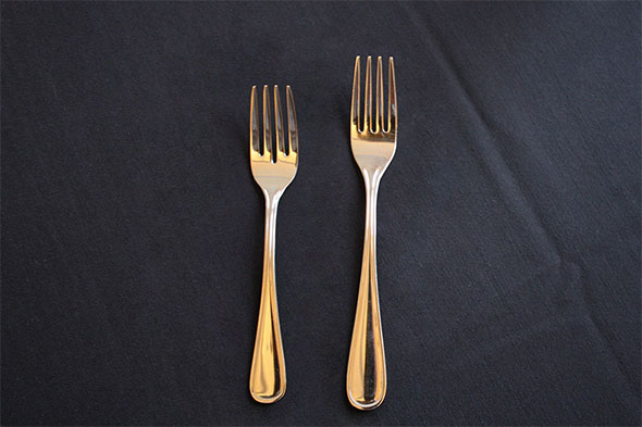 Нелегко понять когда использовать вилку для салата, а когда столовую вилку. Просто взглянув на них легко запутаться. У обоих столовых приборов по четыре зубчика, та же форма и функция. Каждая из вилок создана для накалывания еды, но созданы они для разных блюд.